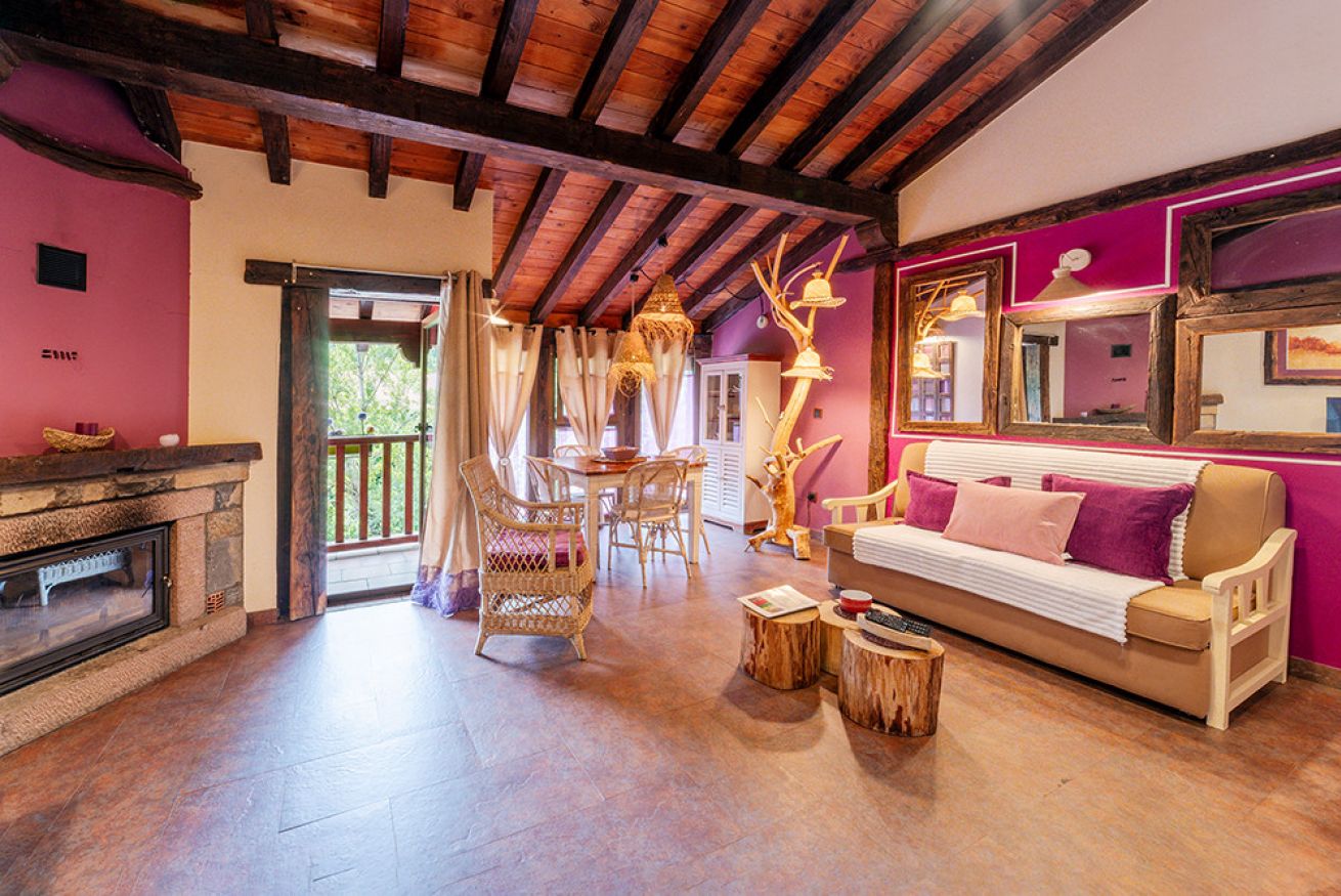 Apartamento de un dormitorio. Chimenea, jacuzzi doble y terraza con buenas vistas. Consta de salón con chimenea y cocina americana equipada con menaje y electrodomésticos. Dormitorio con cama de 150 y jacuzzi doble. Cuarto de baño. Capacidad 2 personas y posibilidad de 2 personas mas en sofá cama.