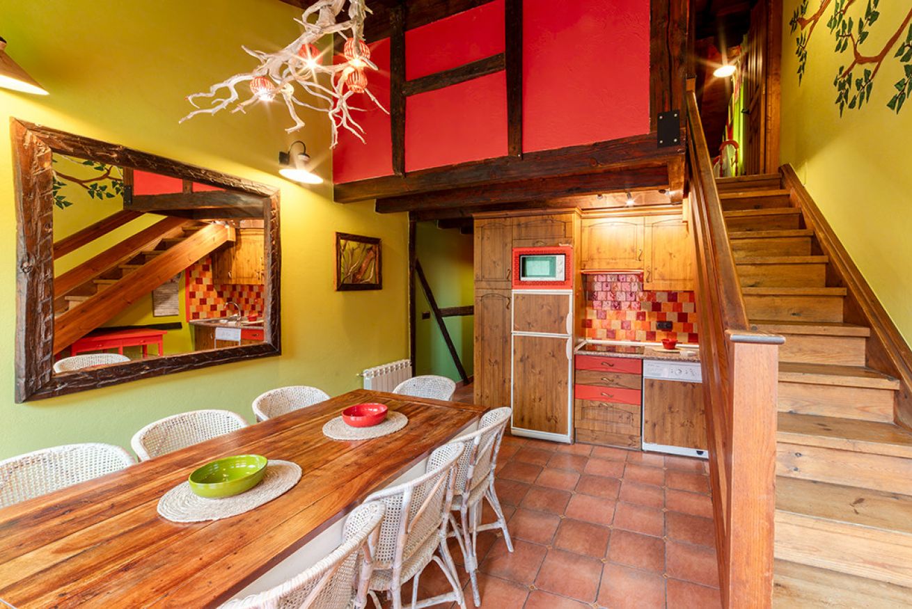 Distribuido en dos plantas. Consta de zona de estar independiente con chimenea tipo estufa. Comedor con balcón, buenas vistas y cocina americana equipada con menaje y electrodomésticos. Dormitorio principal con cama de 150, jacuzzi doble y cama térmica al lado. Aseo incorporado al dormitorio. Dormitorio con dos camas individuales. Cuarto de baño completo con ducha. Terraza compartida con el apartamento colindante. Capacidad 4 personas y posibilidad de 2 personas mas en sofá cama.